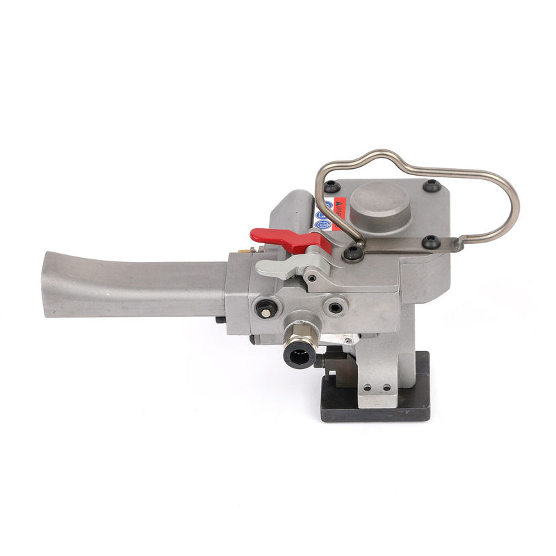 Pneumatisches Bandagierwerkzeug mit Versiegelungsfunktion, weit verbreitet beim Baumwollballen, für PET-Bandbreiten von 13-25 mm, Schweißzeit einstellbar. Die kleine, kompakte Maschine nur mit Reibschweißfunktion. Sobald das Band die Maschine berührt, schmelzen sie und verbinden sich, genau wie wir es uns vorstellen. Wir fertigen und liefern diese Art von Maschine seit über 20 Jahren, sammeln Erfahrung in der Herstellung der Maschine und machen sie perfekt für die Verpackung.